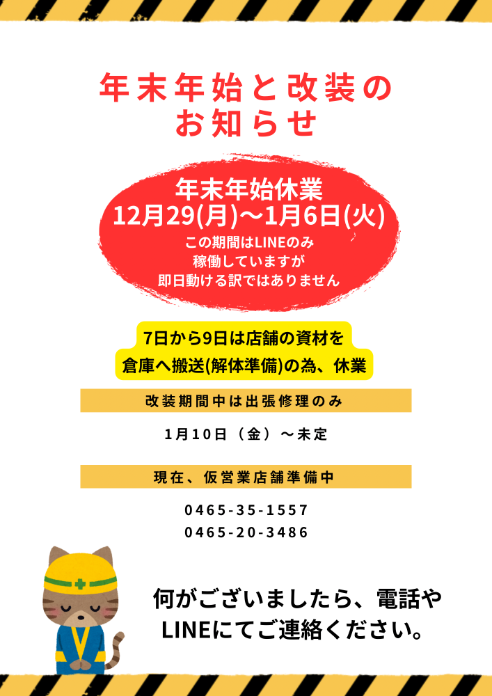 問合せに連絡頂きましても修理受付にはなりません。